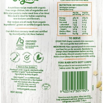 Only Organic Chicken, Vegetables & Star Pasta, 170g (8 months+)