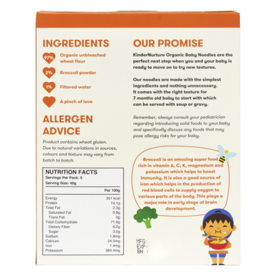 KinderNurture Organic Baby Noodles- Broccoli Flavour, 200g.