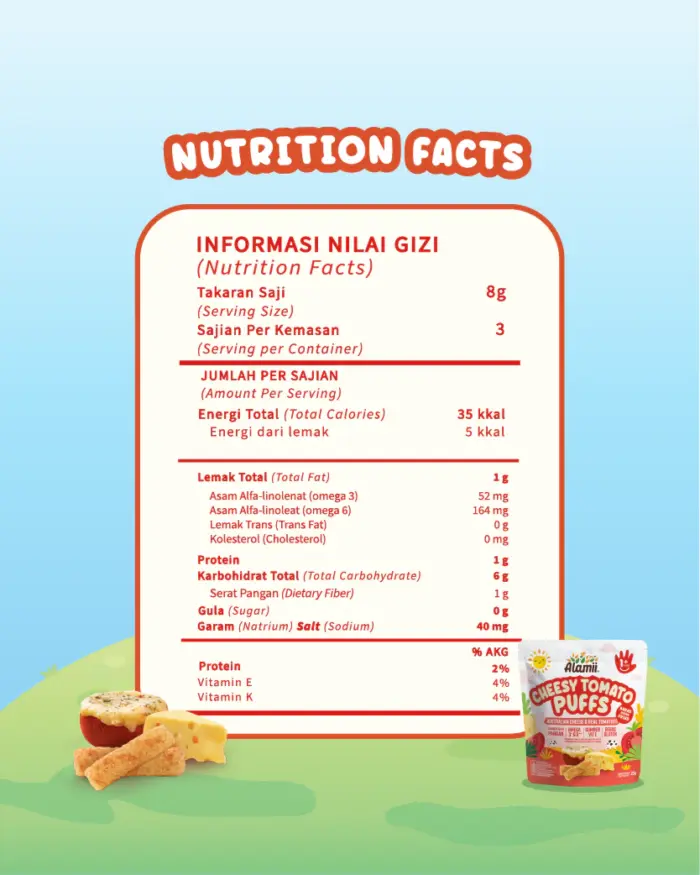 Alamii Puffs Cheesy Tomato, Think zesty tomato soup! A blend of real tomatoes, cheese, and spices, this flavor will transport you instantly to a garden of tomatoes.