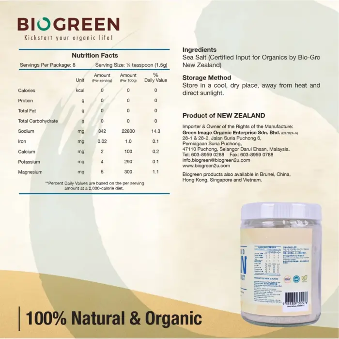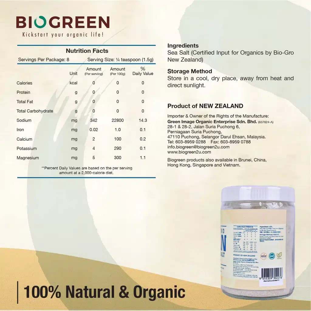 100% Organic Sea Salt (Certified Organic by Bio-Gro New Zealand)