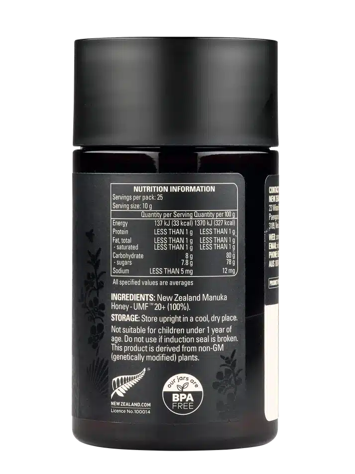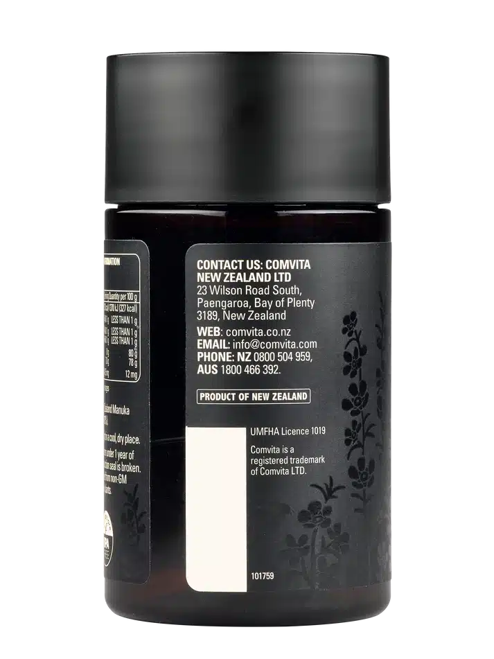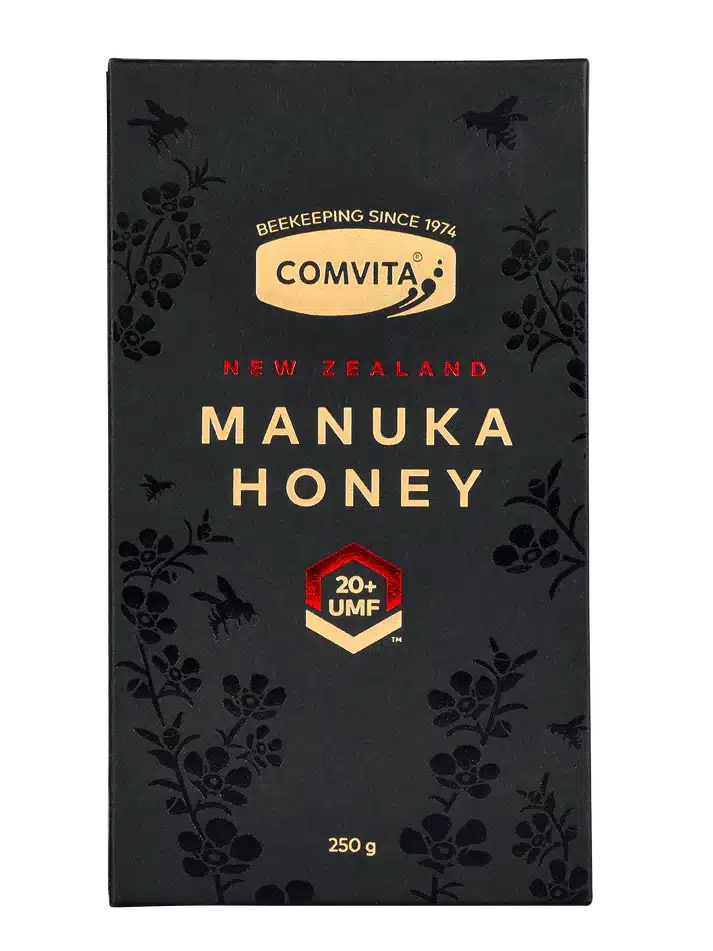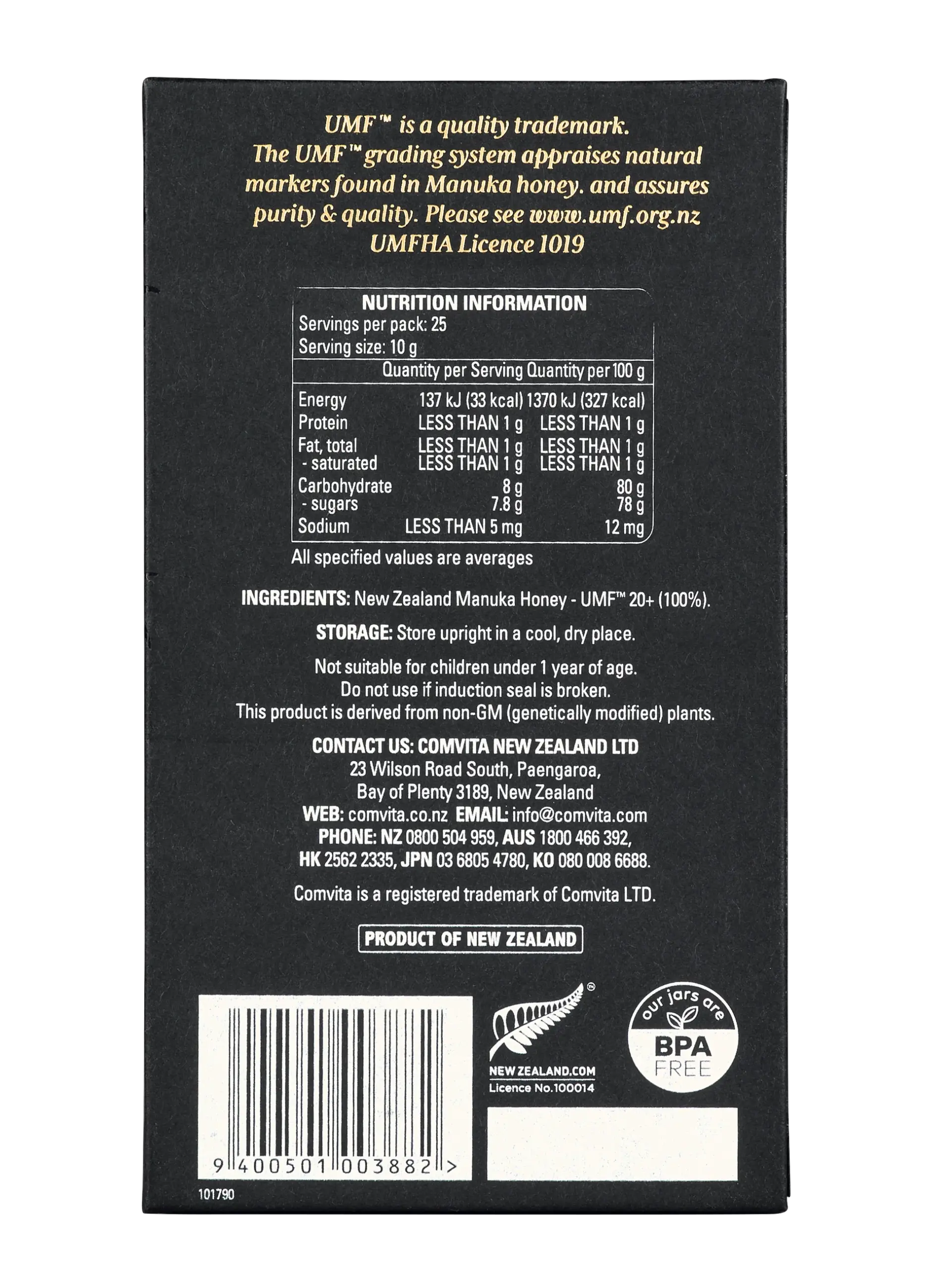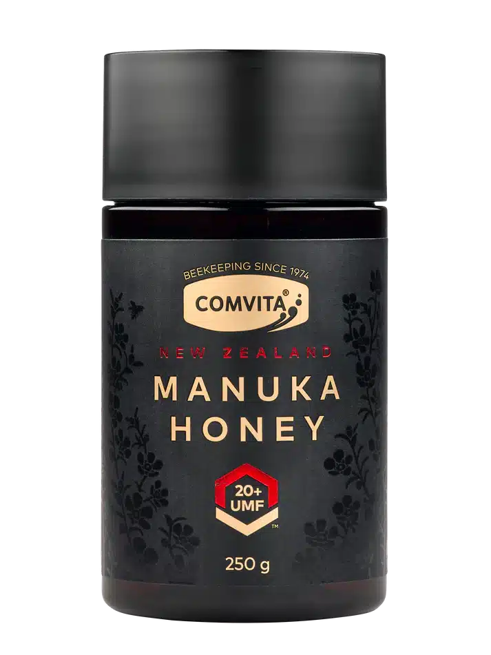 Comvita® UMF™ 20+ Manuka Honey is a rare, high potency Manuka honey produced in New Zealand. Made from the nectar of the Manuka bush (Leptospermum scoparium), which is native to New Zealand; this ultra-premium + Manuka Honey is recognised across the globe for its purity and unique properties.