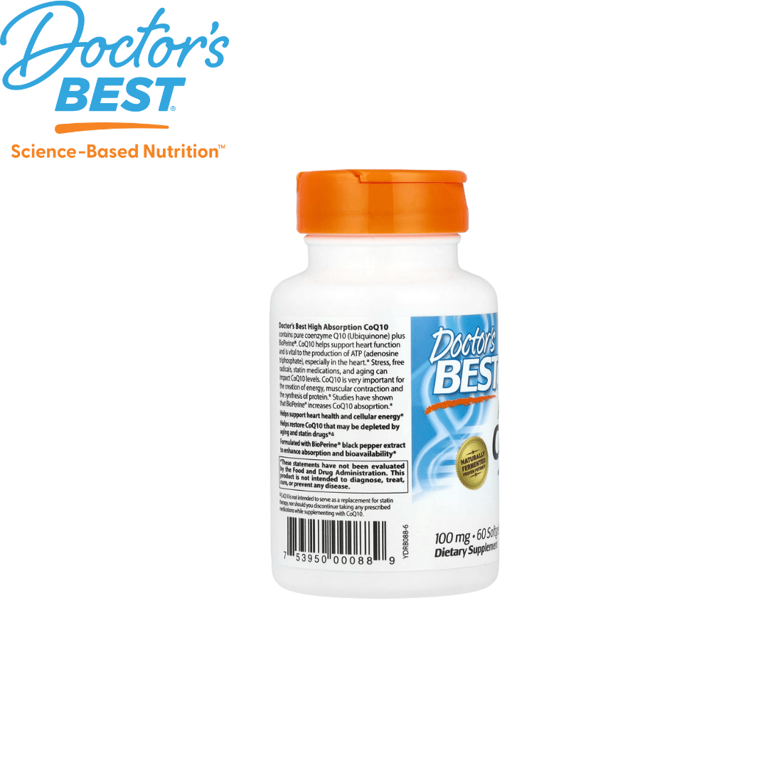 Doctor’s Best High Absorption CoQ10 contains pure coenzyme Q10 plus BioPerine. CoQ10 helps support heart function and helps promote energy production in the cells. It is vital to the production of ATP (adenosine triphosphate), especially in the heart. Stress, free radicals, statin medications and aging can impact CoQ10 levels.