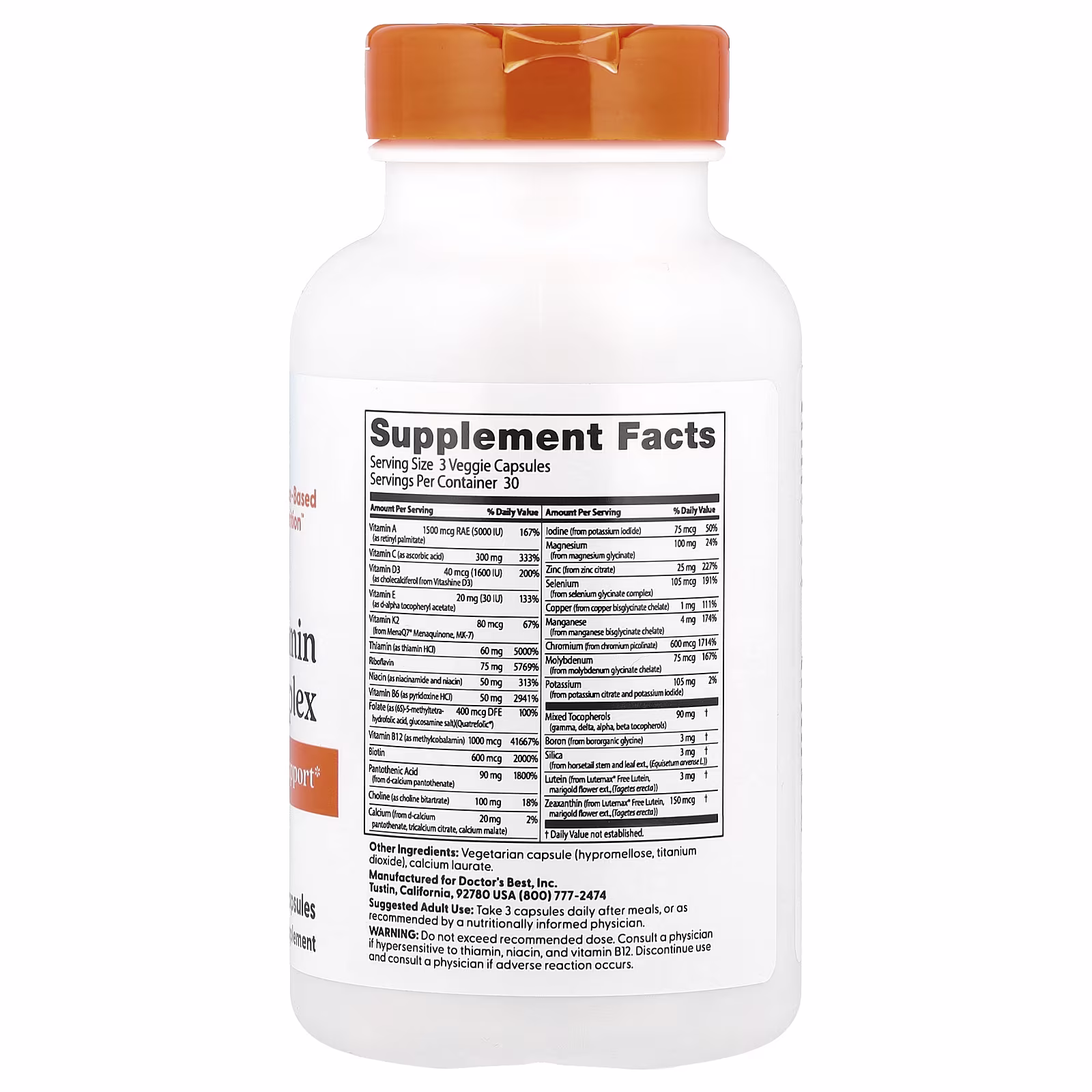 At Doctor’s Best, our multivitamin blend provides comprehensive health support. Tailored to diverse nutritional needs, it provides an array of essential vitamins and minerals, supporting overall health and vitality towards a vibrant wellness journey.