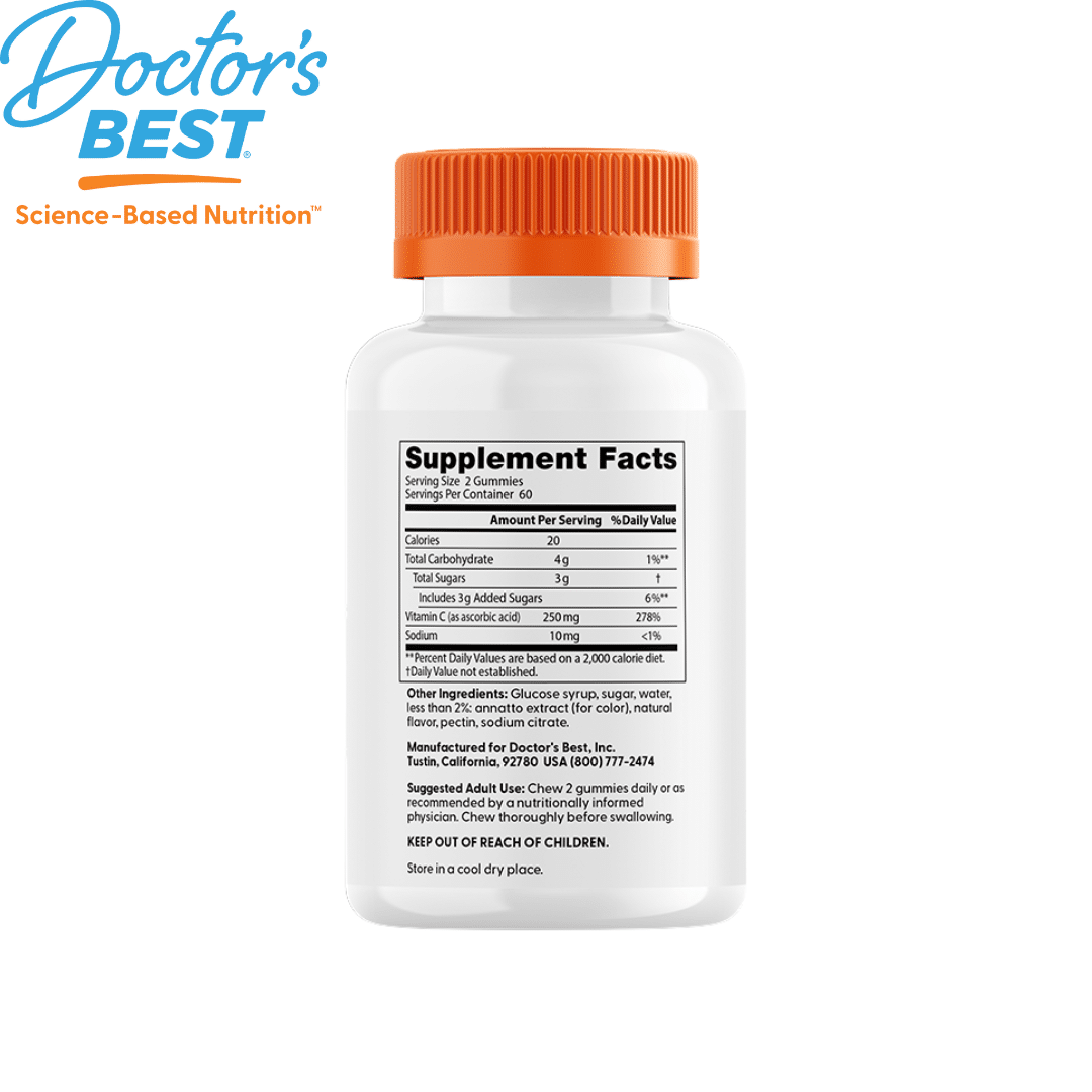 Drink lots of water, get lots of sleep, and take vitamin C! Vitamin C is indispensable to your body for its role in the synthesis of collagen, carnitine, and certain brain chemical transmitters. A daily dose of these delicious gelatin free gummies provides fundamental support for your immune system, brain, eyes, heart and circulation.*