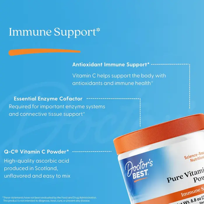 At Doctor’s Best, we pursue excellence. Our formula, featuring Q-C is produced in Scotland and renowned for its quality and dependability. Extensive clinical research confirms the crucial role of Vitamin C in supporting the immune system, brain, eyes, heart, circulation, and overall organ health.*