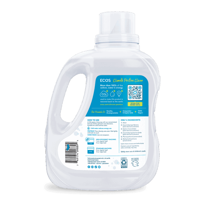 Wash your clothes with care using ECOS Hypoallergenic Laundry Detergent – Free & Clear.