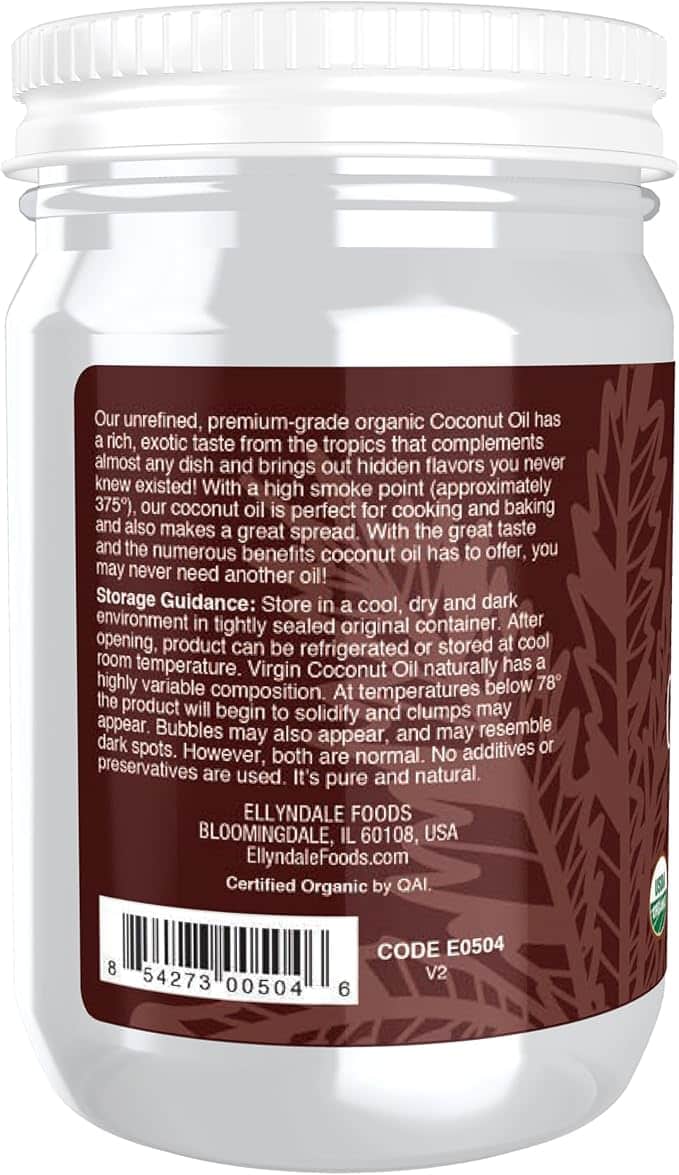 Store in a cool, dry place. Coconut oil may solidify at cooler temperatures—this is normal.
