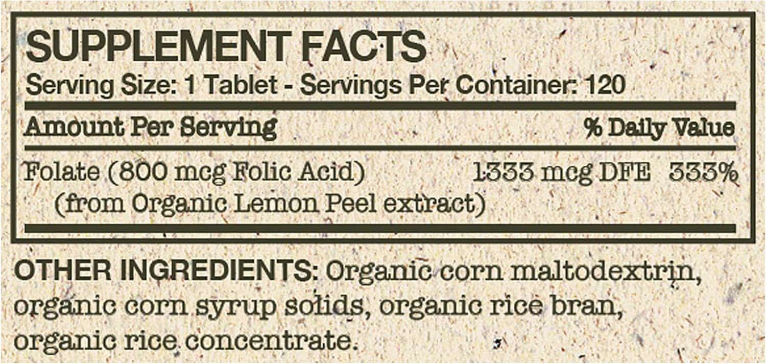Futurebiotics Folic Acid – Certified Organic, 120 tabs.