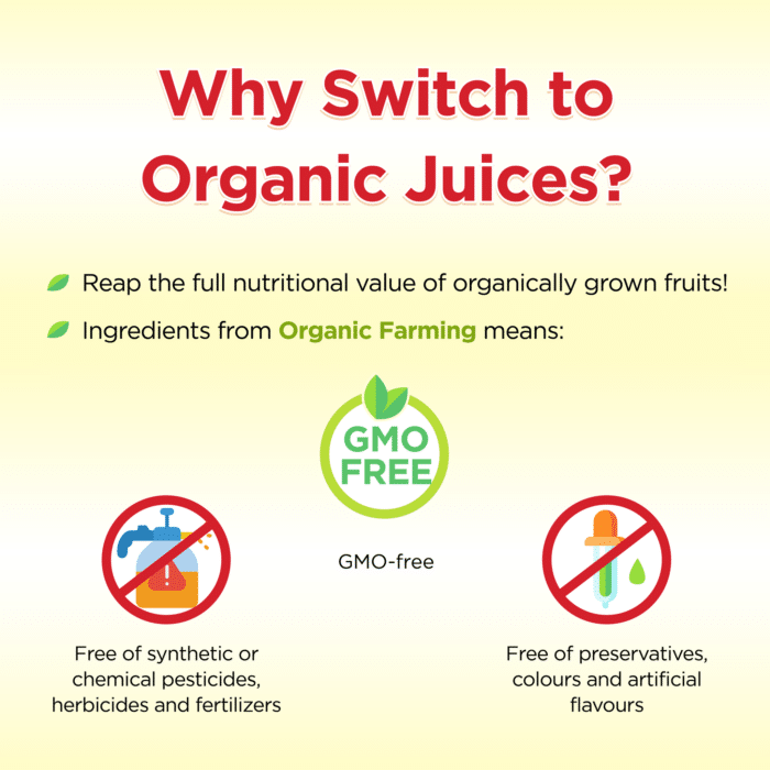 Mixed fruit juice* from mixed fruit juice concentrate* and fruit juice pulp* 54% (apple*, orange*, pineapple*, peach*, mango*, passion fruit*, lemon*), water, carrot juice* (6%) from carrot juice concentrate*. *From organic farming. Contains naturally occurring sugars.