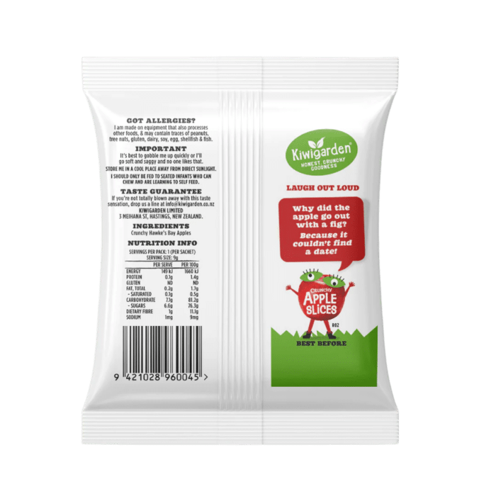 Kiwigarden’s 100% New Zealand-grown freeze-dried apple slices lock in virtually all the goodness found in fresh apples. We’re bringing the health benefits of a whole apple into one convenient and tasty package your kids will love!