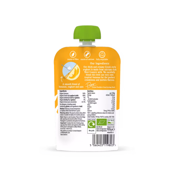 Little Freddie Creamy Banana Greek Style Yoghurt, 100g