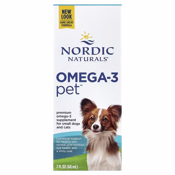Nordic Naturals pure omega-3 oil, derived exclusively from wild anchovies and sardines, offers those important omega-3 fatty acids, EPA and DHA, to help support healthy skin, coat, joints, heart, and the development and maintenance of the brain and eyes.