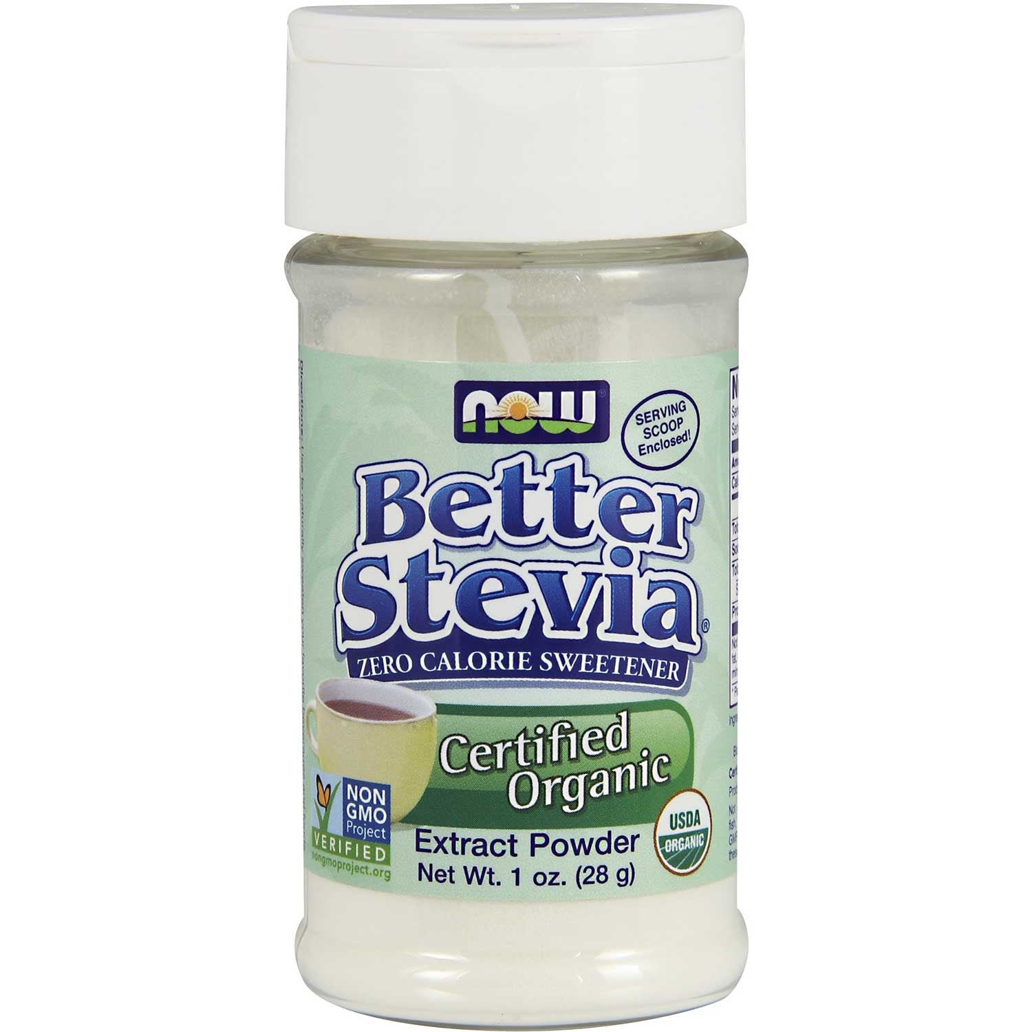 NOW Better Stevia is a zero-calorie, low glycemic certified organic sweetener that makes a perfectly healthy substitute for table sugar and artificial sweeteners. Unlike chemical sweeteners, NOW BetterStevia contains pure stevia extract. NOW Foods takes special measures to preserve stevia’s natural qualities in this unique, pure, better-tasting stevia.