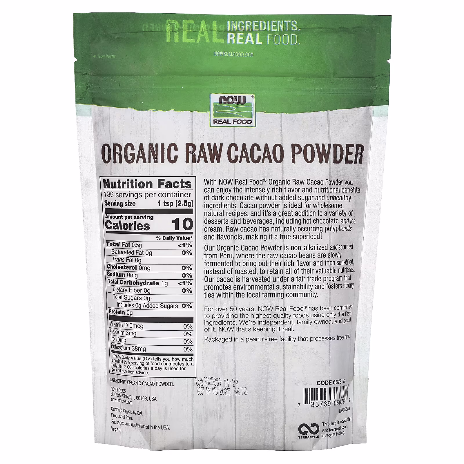 NOW Foods, Real Food, Organic Raw Cacao Powder, 12 oz (340 g)
