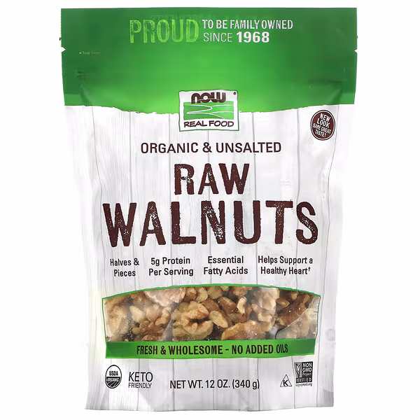 NOW Foods, Real Food, Organic Raw Walnuts, Unsalted, 12 oz (340 g)