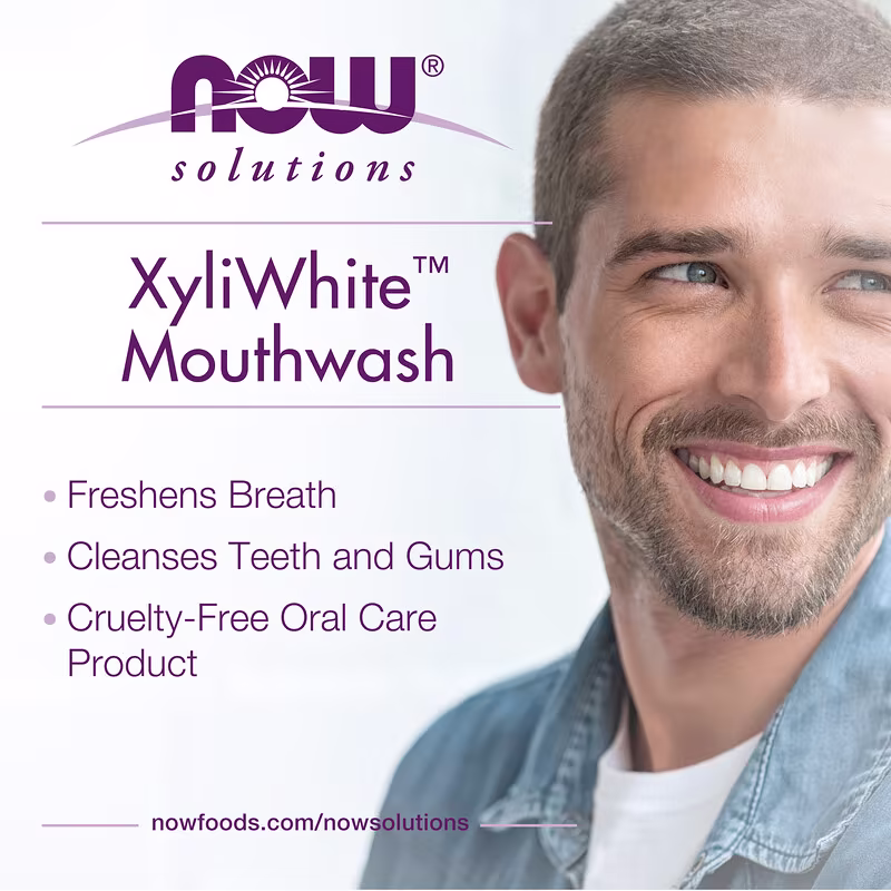 Solution: NOW® XyliWhite™ Mouthwash is an effective fluoride-free oral rinse that works in unique ways to help you achieve a smile that’s healthier and brighter than ever before! XyliWhite™ Mouthwash gets its cleansing properties from xylitol – a naturally occurring sugar alcohol that has been shown in clinical studies to help promote oral hygiene, effectively rinsing debris, such as food particles, from mouth surfaces. By helping to maintain the mouth’s normal balance, xylitol also helps to keep the enamel surface of teeth clean and fresh.
