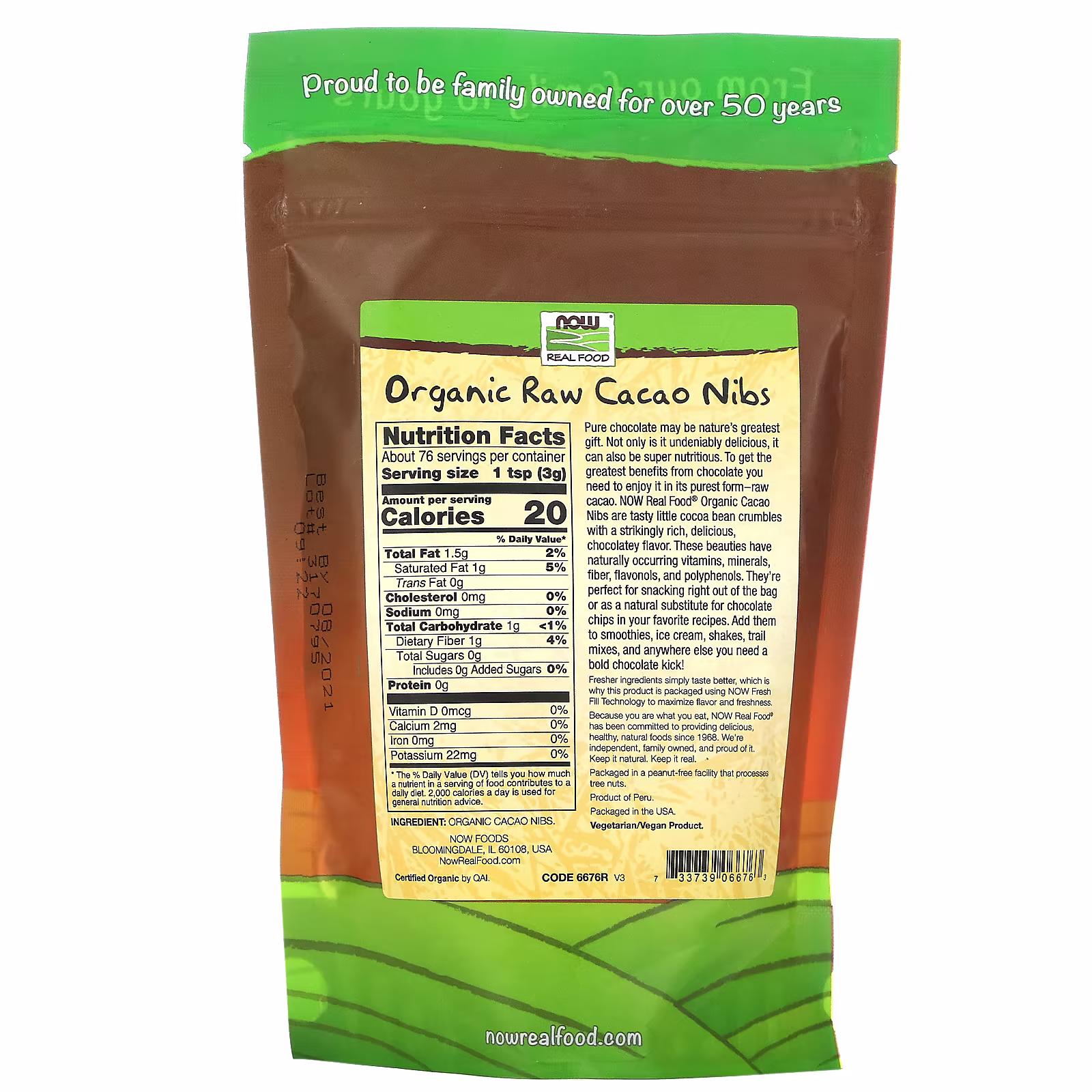 NOW Real Food Organic Raw Cacao Nibs, 227 g.