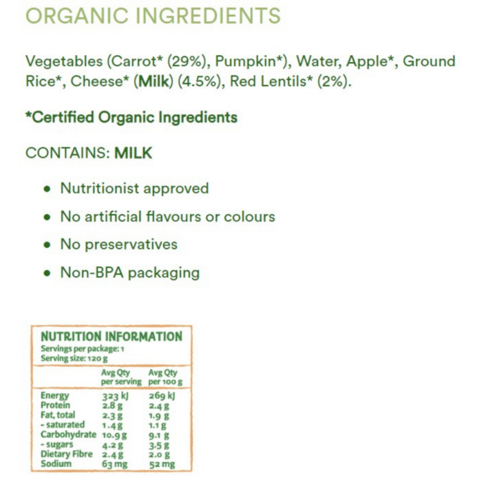 Only Organic Carrots Red Lentils & Cheddar, 120g (8+ months)