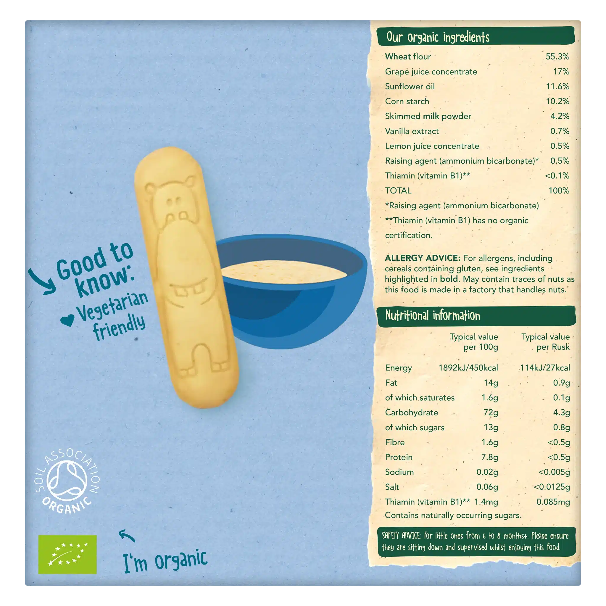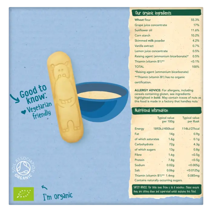 Light, crunchy vanilla-flavored rusk biscuits specially made for little ones—perfect for snacking and supporting self-feeding.