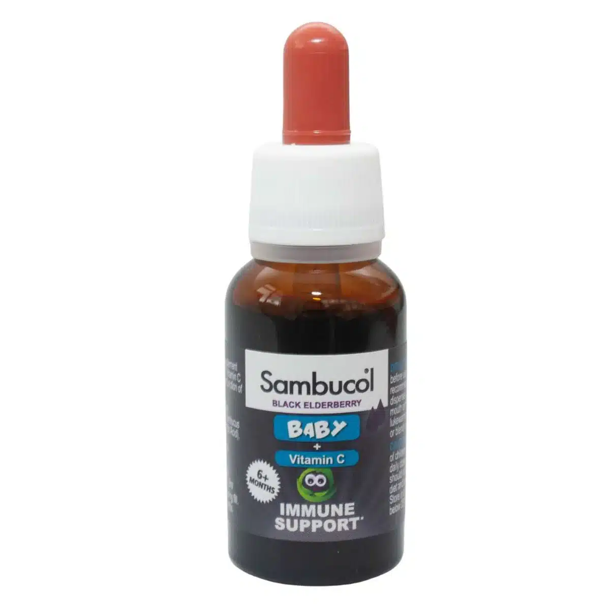 Black elderberries naturally contain flavonoids, plant compounds known for their antioxidant properties, while Vitamin C contributes to the normal function of the immune system. Sambucol Baby Drops are designed with early development in mind — non-drowsy, easy to administer, and free from unnecessary additives.