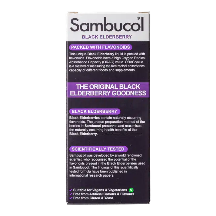 Sambucol is a globally trusted elderberry supplement brand developed by virologists. It uses the patented Black Elderberry Extract (Sambucus nigra) rich in antioxidants to support immune health for both adults and children.