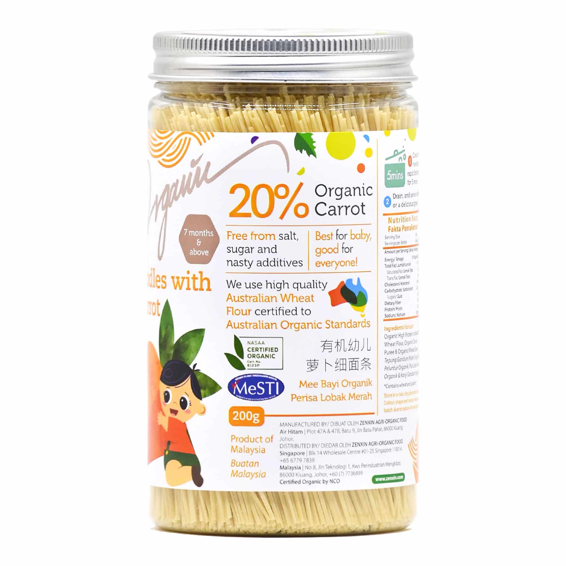 This Simply Natural organic baby noodle is handmade using premium ingredients: 20% fresh organic carrot puree and high protein unbleached flour. It is naturally colourful, nutritious and fully organic. Thinness of 1mm, easy for congestion. Perfect choice for kids. No added sugar, salt or MSG. Absolutely ZERO preservatives, additives, colourings & flavourings. Free from harmful chemical residuals.