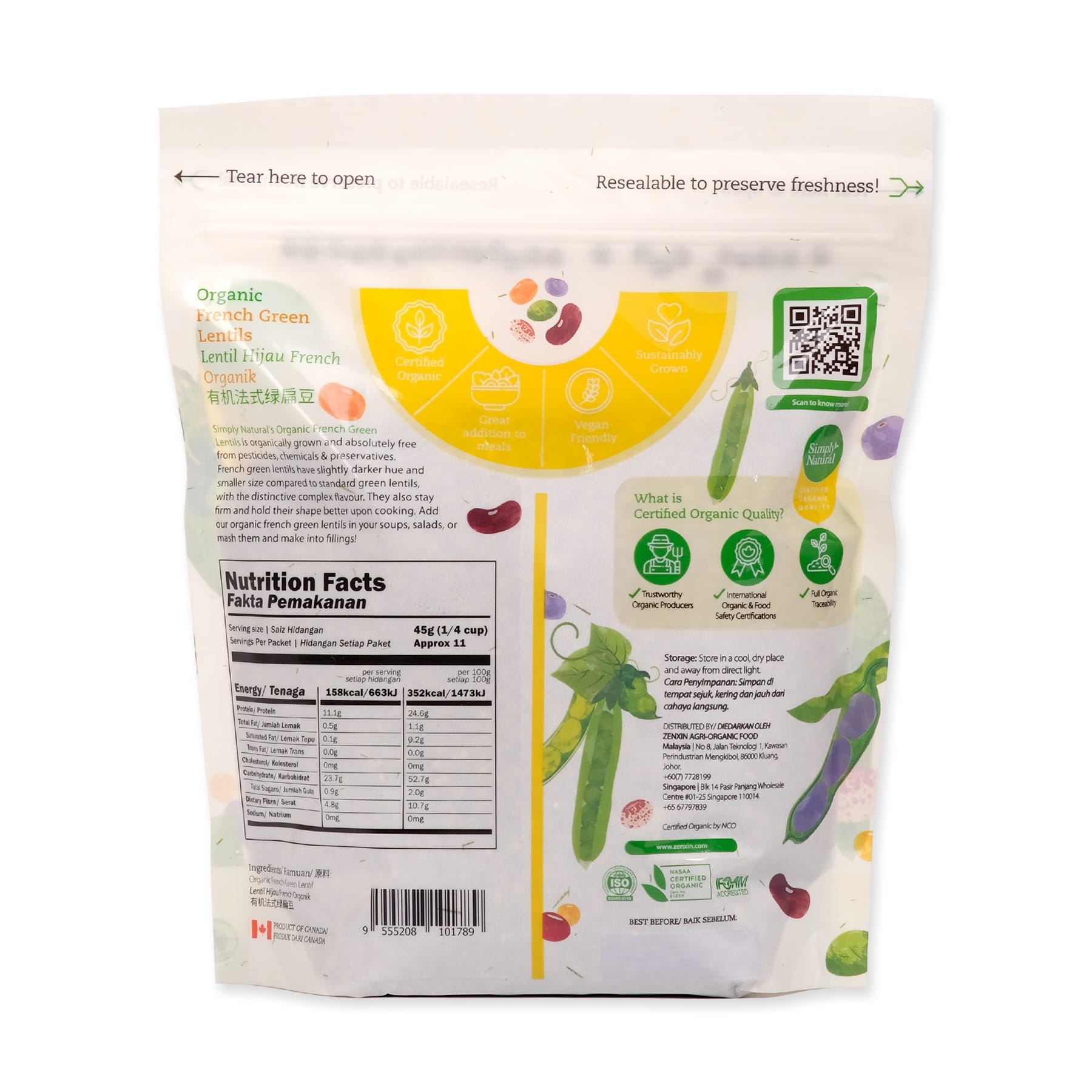 Green lentils are rich in fiber and protein. Suitable for vegetarians/vegans. Has a very soft texture and hold on their shape even after cooked. Its mild peppery flavour makes a good pair with all your favourite dishes like soups, vegetables, pasta, warm or cold salads, or even as a standalone side dish.
