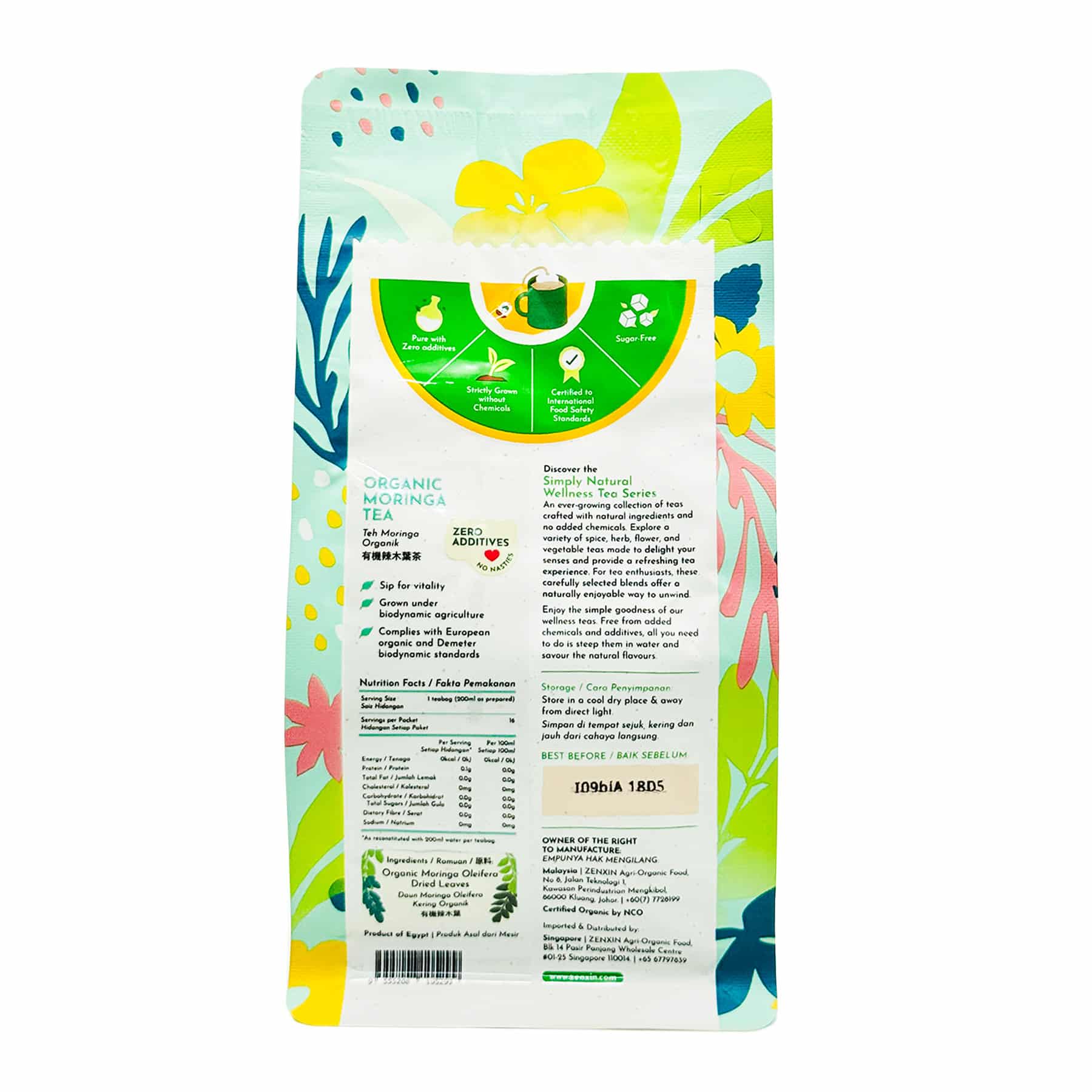 This Simply Natural Organic Moringa Leaf Tea is a nutrient powerhouse. Contains vitamin A, B & C, and minerals such as calcium, iron, magnesium, potassium & phosphorus. Rich in 18 essential amino acids & contains highest protein (40%) ratio than any other plant. Helps to combat fatigue & boost immune system. Certified Organic.