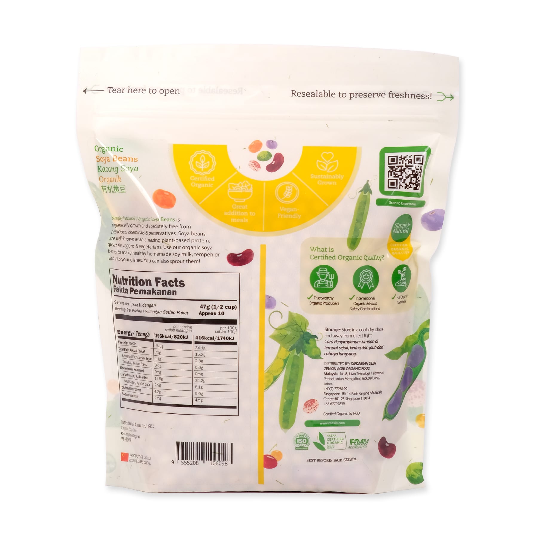 Soya beans are highly nutritious, suitable for all age group of people to improve their overall health. Extremely high in protein; suitable for plant-based diets. Rich in carbohydrates, polyunsaturated fats, soy-isoflavones, fibre and calcium. Contains phytoestrogen which help to reduce menopause syndrome for women. Can be used as an ingredient in soups, sauces, stews, mixed into salads or use as toppings for sandwiches