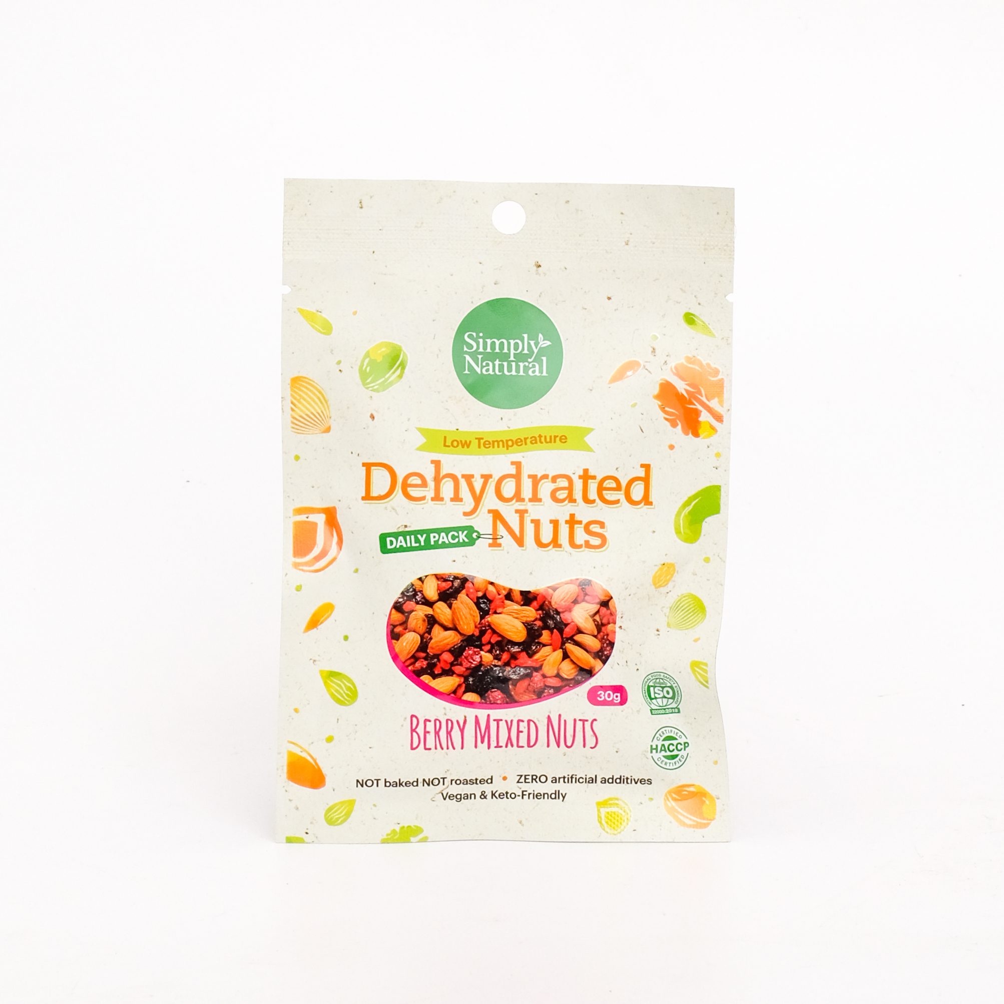 NOT baked NOT roasted, Simply Natural’s Dehydrated Berry Mixed Nut is dehydrated at a low temperature of 60°C for at least 15 hours to retain the heat-vulnerable ‘good’ fats present in nuts. It is made in XIN’s very own NASAA, ISO22000: 2018 & HACCP certified facility, with carefully selected premium quality ingredients, and guaranteed FREE from artificial additives, preservatives and colourings. You may taste the natural goodness of the unsalted nuts, seeds & dried fruits, and we encourage you to incorporate them as part of your healthy diet. Less heaty, more goodness, definitely one of the best vegan & keto-friendly snacks of choice! Now comes in a pocket-sized packaging that contains a single serving of nuts for your daily need!