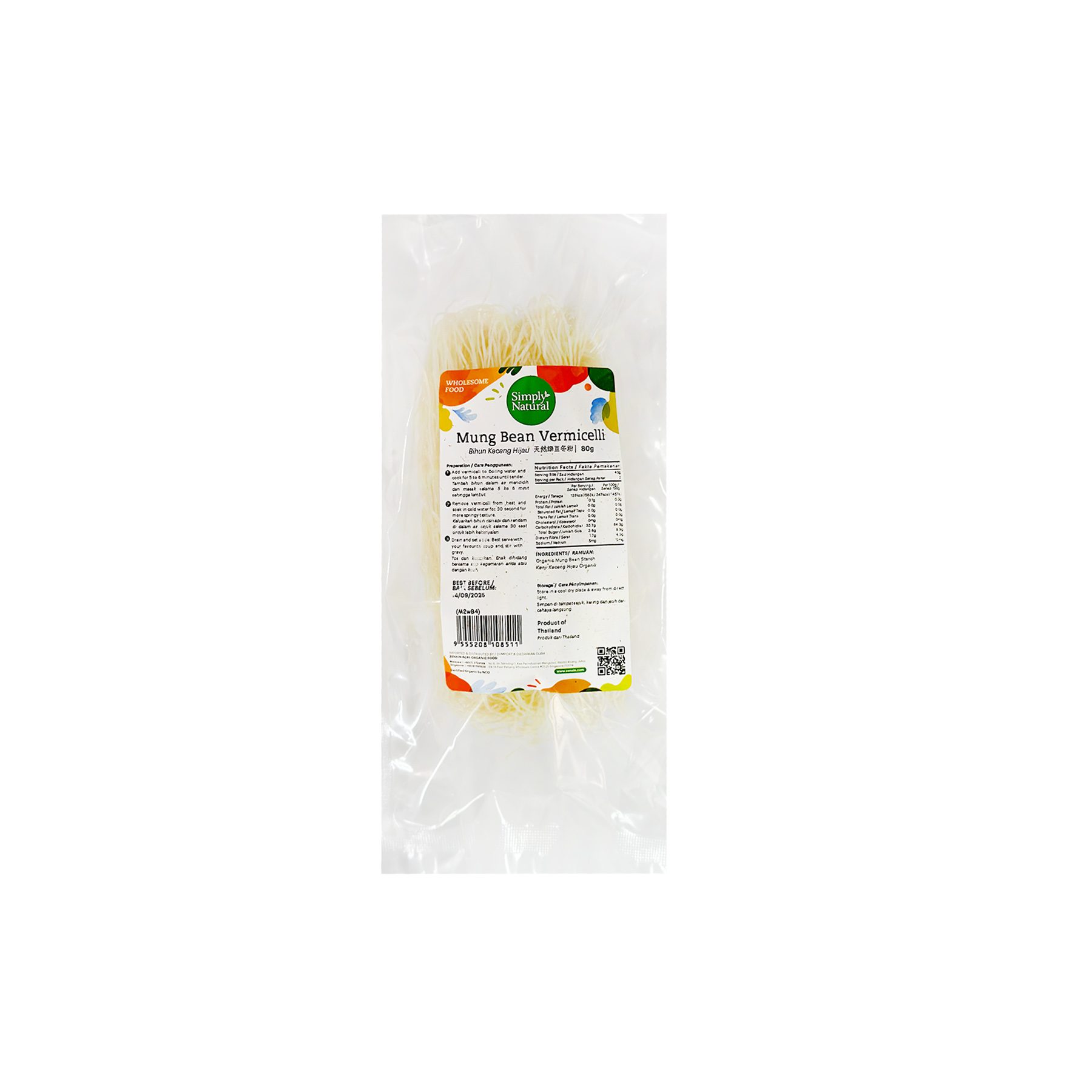 Delicious gluten-free vermicelli made with organic mung beans and sago starch. Natural mung beans flavour. Rich in protein, phytonutrients and antioxidants, boosts nutritional intake. Can be used in stir fry dishes, soups and salads.