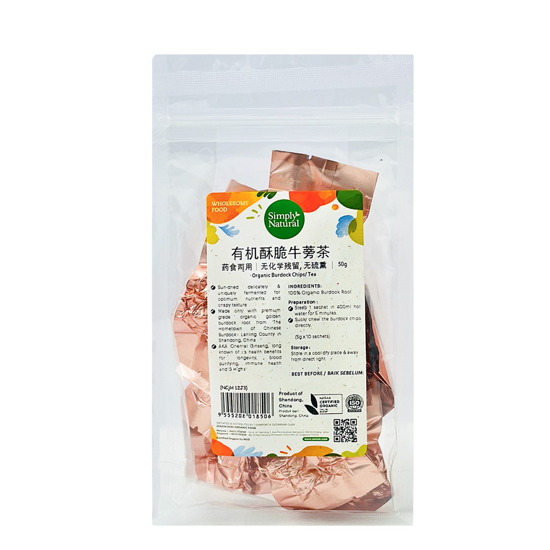 Simply Natural’s Organic Burdock Chips/ Tea is originated from Lanling in Shandong, China- aka The Hometown of Chinese Burdock, it is cultivated without chemicals and guaranteed free from pollutants. Uniquely fermented to create sweet, earthy flavour with crunchy texture, it is meant to be consumed in two ways- suck/ chewed directly or brew into tea. Absolutely NO sulphur treatment, NO heavy metal residue and NO chemicals, you may enjoy this functional food tonic for general well-being.