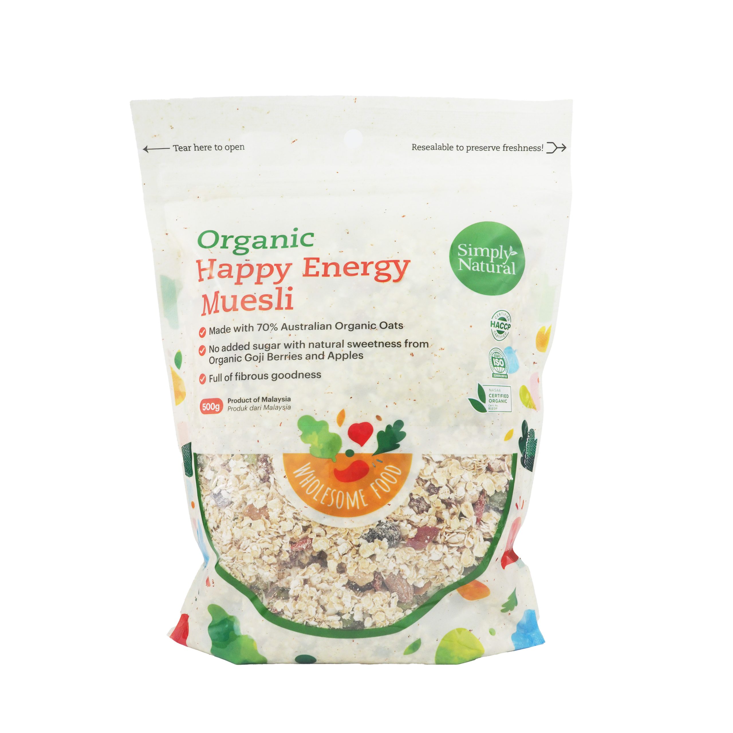 Simply Natural’s Organic Happy Energy Muesli is made of high quality certified organic ingredients. Australian oats smell uniquely fresh and has a soft texture great for easier digestion. The combination of dried fruits & nuts makes this muesli mix tastes naturally sweet & sure to give you the energy you need to kickstart the day. Free from added sugar, preservatives & flavourings.