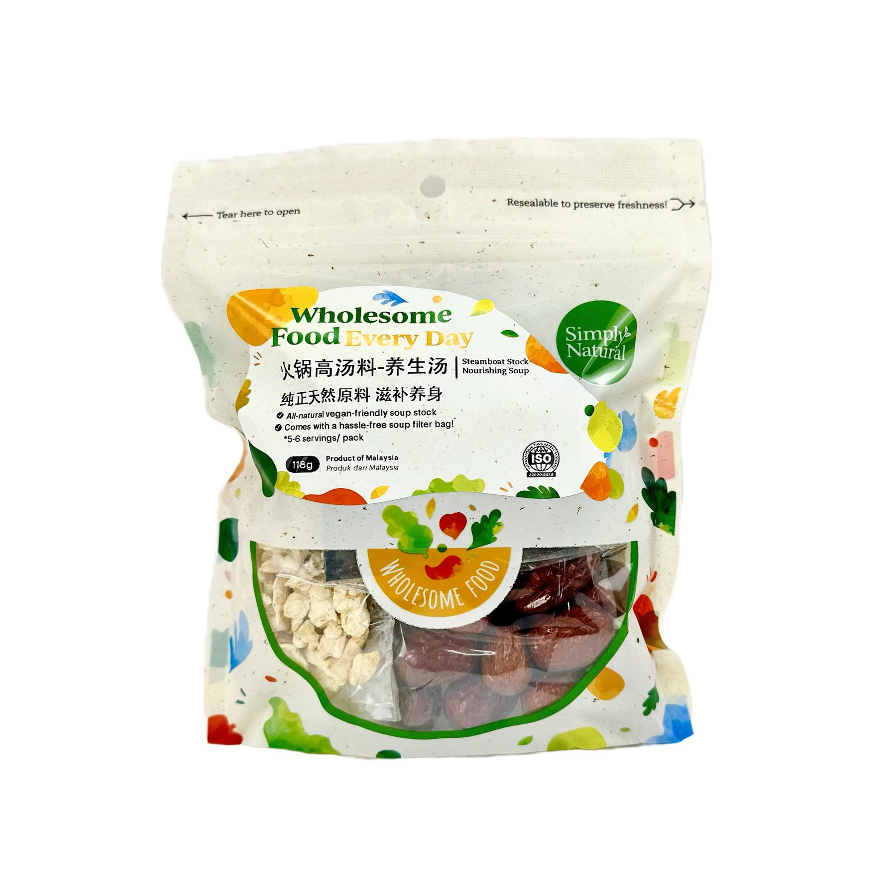Crafted from simple, ready-made stock, Simply Natural Nourishing Soup Steamboat Stock boasts a blend of wholesome natural ingredients, creating a rich and wholesome taste for an extraordinary steamboat experience. With a commitment to purity, there’s no added salt; instead, the rich and natural flavors arise from the quality of the ingredients themselves. Elevating the cooking experience, it comes complete with a non-woven soup filter bag, ensuring a hassle-free preparation process. Adding a personal touch, the recipe hails from the kitchen of Miss Theresa Kok at OriginalFood Kitchen, infusing the stock with a unique and expertly curated flavor profile. Certified organic by NASAA and ISO 22 000: 2018.
