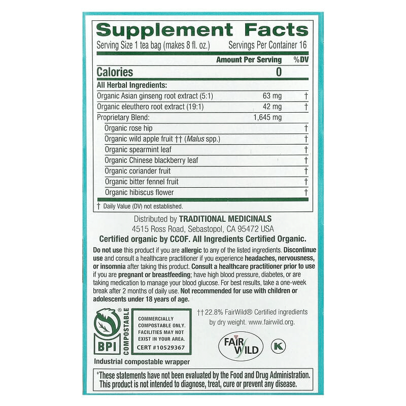 Traditional Medicinals Stress Ease Focus, 16 bags.