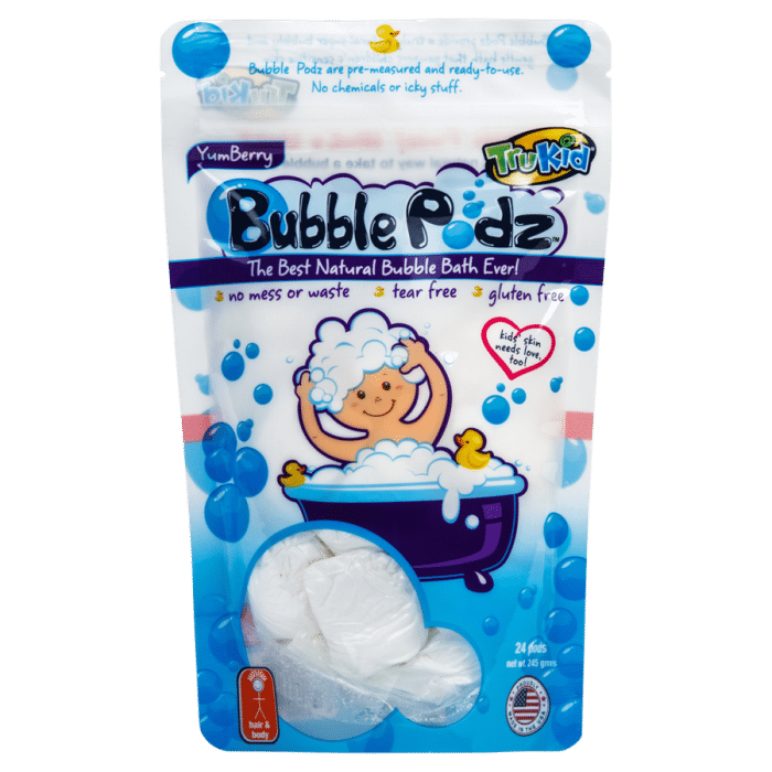 TruKid Yumberry Scented Bubble Podz are fun and safe bubble pods designed for kids to enjoy bath time.